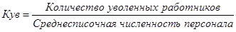 2) коэффициент по увольнению (выбытию) работников (Кув ):