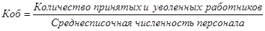 4) коэффициент общего оборота рабочей силы (Коб ):