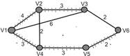 2. По алгоритму окрашивания найти кратчайший путь между вершинами V 1 и V 6.