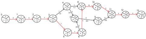 1. Для задачи планирования поставки товаров оптовым покупателям построить сетевой график, привязанный к оси времени, согласно структурно-временной таблицы. Задание конкретного варианта расположено в одной из пяти правых колонок таблицы.