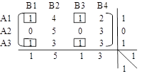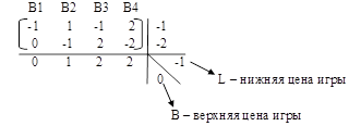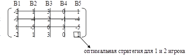 Седловые точки: (А1,В1); (А3,В1); (А1,В3); (А3,В3). V (цена игры) = 1.