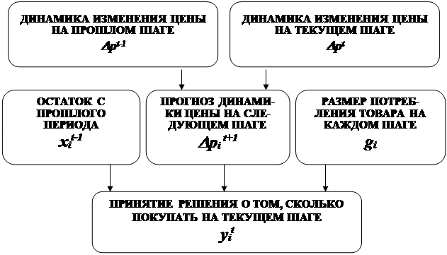 Рисунок 2. Концептуальная схема имитационной модели поведения потребителей на рынке.