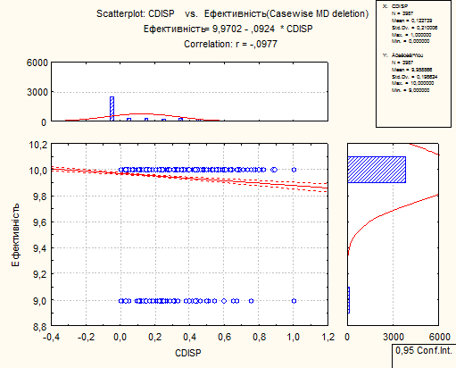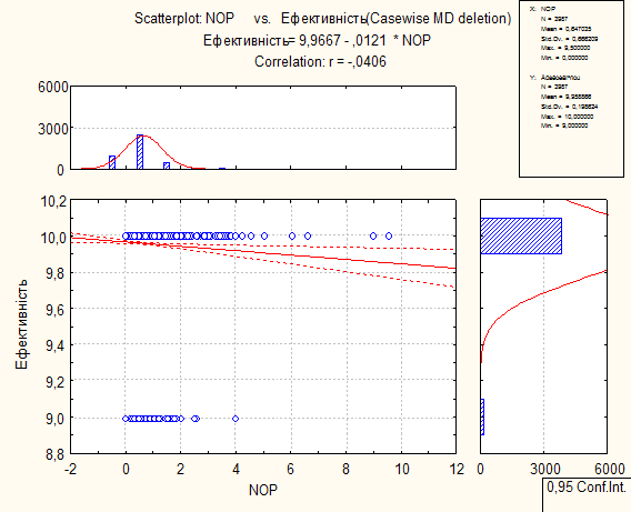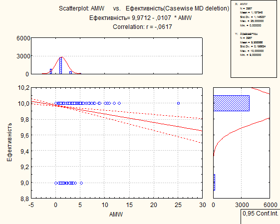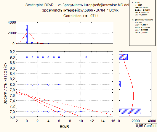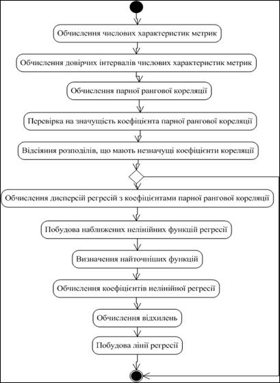 Отже, результатом даного етапу є відсіювання незалежних між собою пар „метрика – експертна оцінка” та визначення за можливістю виду залежності для інших пар.
