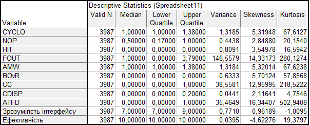 Статистичні дані, які були виміряні за допомогою програмного забезпечення Statisticaподано в таблиці 4.