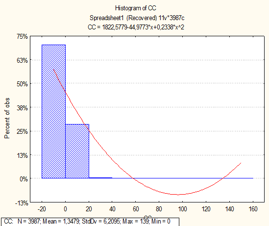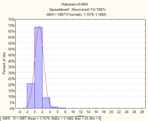 Більш точну інформацію про форму розподілу можна отримати за допомогою критеріїв нормальності (наприклад, критерію Колмогорова-Смирнова або W критерію Шапіро-Уїлки). Однак жоден із цих критеріїв не може замінити візуальну перевірку за допомогою гістограми (графіка, що показує частоту влучень значень змінної в окремі інтервали).