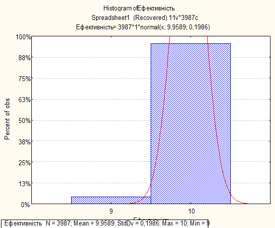 При проведенні первинного статистичного аналізу було обчислено статичні характеристики такі, як математичне сподівання, середнє квадратичне відхилення, коефіцієнт ексцесу та асиметрії, довірчі інтервали та визначено закони розподілу.