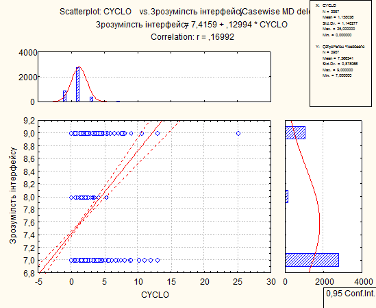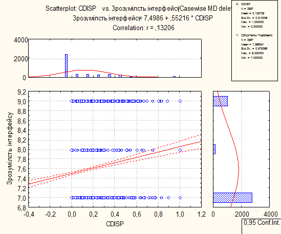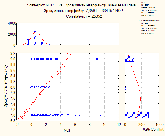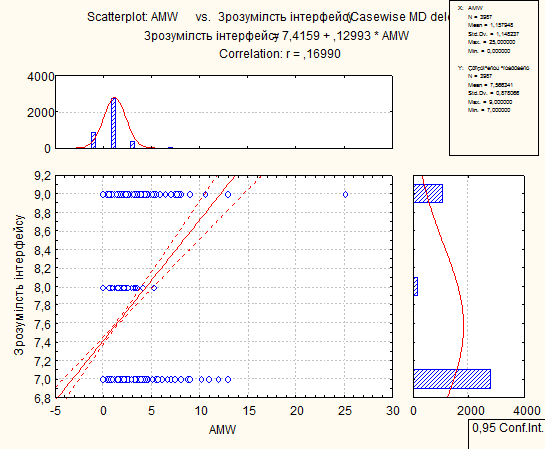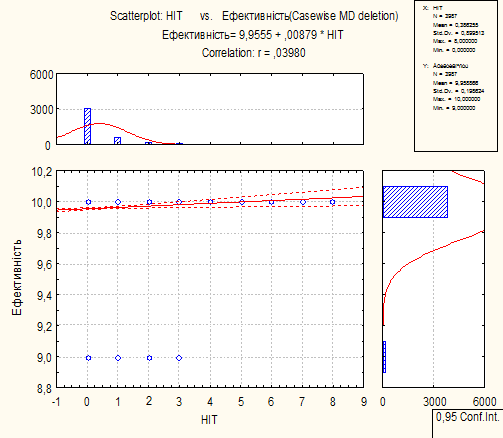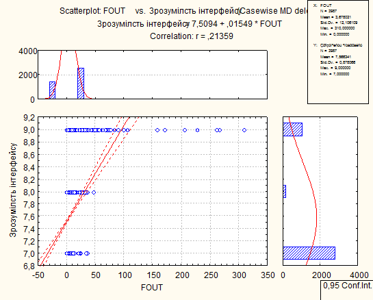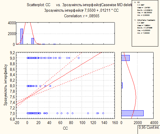Для проведення регресійного аналізу був використаний пакет Statistica. За його допомогою було автоматично побудовано лінії регресії для пар метрика-експертна оцінка, визначено функції регресії.