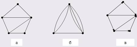 В основе сетевого моделирования лежит изображение планируемого комплекса работ в виде графа. Граф – это схема, состоящая из заданных точек – вершин, соединенных определенной системой линий, которые также называются ребрами или дугами графа. Ребра могут быть ориентированными (тогда они называются дугами и снабжаются стрелками) и неориентированными. Пара вершин может соединяться более чем одним ребром и такие ребра называются кратными. Вершина может быть соединена ребром сама с собой, и такое ребро называется петлей. Имеется несколько типов графов: обыкновенный граф (рис. 1, а), мультиграф (рис. 1,б), ориентированный граф (рис.1,в) и др. граф без дуг, петель и кратных ребер называется обыкновенным. Если граф имеет кратные ребра, то он называется мультиграфом. Обыкновенный граф, у которого все ребра являются ориентированными, называется ориентированным.