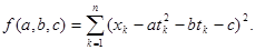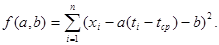 Как известно, метод наименьших квадратов был разработан великим немецким математиком К. Гауссом в 1794 г. Согласно этому методу для расчета наилучшей функции, приближающей линейным образом зависимость x от t, следует рассмотреть функцию двух переменных