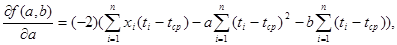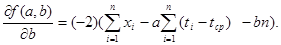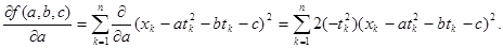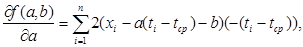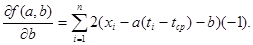 Чтобы найти эти оценки, надо вычислить частные производные от функции f(a,b) по аргументам a и b, приравнять их 0, затем из полученных уравнений найти оценки: Имеем: