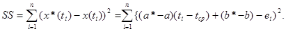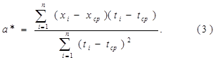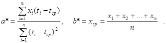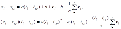xk = a (tk - tср )+ b + ek , k = 1,2,…,n,