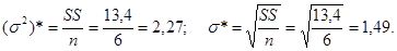 В последнем девятом столбце табл.1 приведены квадраты значений из восьмого столбца. Их сумма - это остаточная сумма квадратов SS = 13,64. В соответствии со сказанным выше оценками дисперсии погрешностей и их среднего квадратического отклонения являются