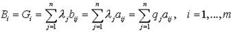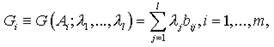 | Gi=libi1+l2bi2=(1-l)Wi+lBi=(1-l)aij+ i=1,…,m. | (14) |