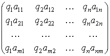 3) Пусть l=n, а в качестве матрицы В можно взять матрицу, получающуюся из матрицы А, если каждую строку последней заменить на произвольную перестановку ее элементов. В частности, можем положить В=А. В общем же случае элементы матрицы В имеют вид bij=aikj(i), i=1,…, m; j=1,…,n, где aik1(i), aik2(i),…,aikn(i) – некоторая перестановка элементов ai1, ai2,…,ain i-й строки матрицы А.