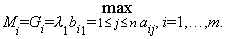 5) Показатель эффективности стратегии Аi по максимаксному критерию обозначим через Мi и определим его по формуле (3) с учетом (18) и того, чтоl1=1: