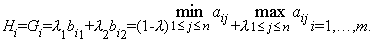 Отметим, что если В=А, то коэффициенты lj, j=1,…,n, можно формально интерпретировать как вероятности состояний природы и в, таком случае, обобщенный критерий Гурвица совпадает с критерием Байеса.