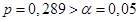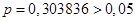 , следовательно, испытуемая гипотеза принимается. Аналогичный вывод можно получить на основе сравнения расчетного и принятого уровней значимости:
