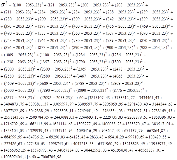 6. Рассчитаем дисперсию по средней арифметической для
