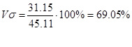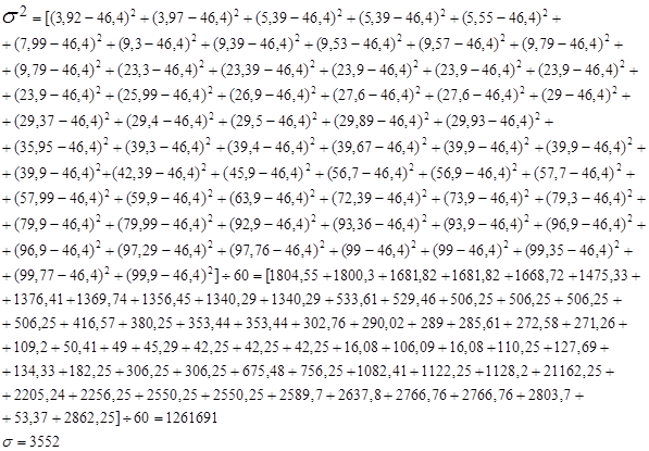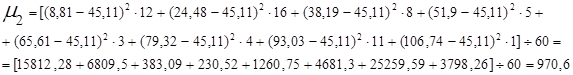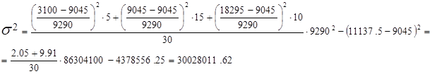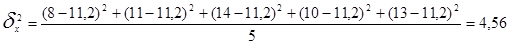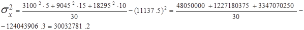 8. Рассчитаем дисперсию по средней арифметической для х: