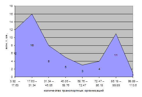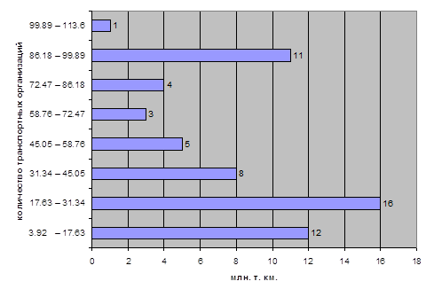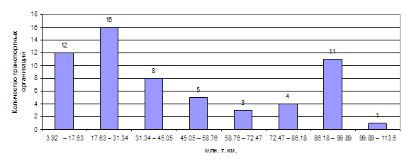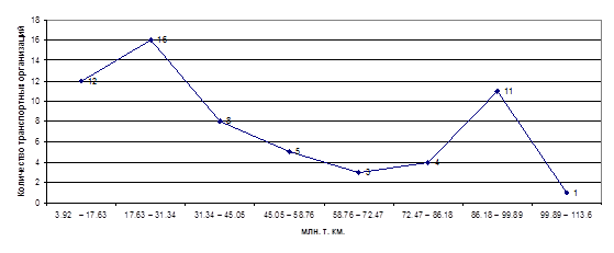 Группировка транспортных организаций по грузообороту транспорта общего пользования (млн.т.км)