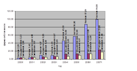 | Форма собственности | 2000г | 2001г. | 2002г. | 2003г. | 2004г. | 2005г. | 2006г. | 2007г. |