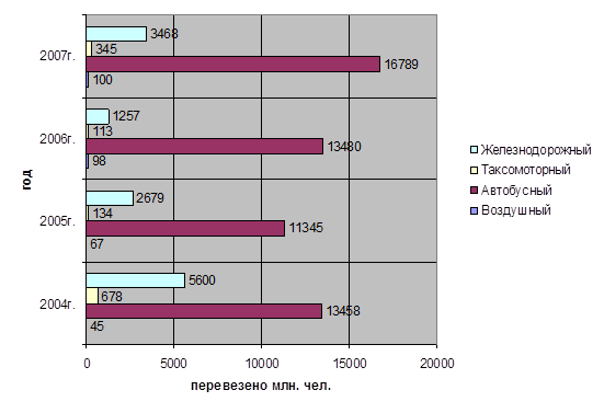 | Вид транспорта | 2004г. | 2005г. | 2006г. | 2007г. |