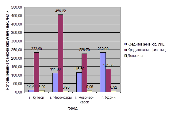 Группировка населения в Чувашской республике по использованию банковских услуг (тыс. чел).