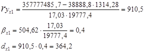 соответствующий коэффициент уравнения множественной регрессии в стандартизированном масштабе.