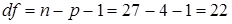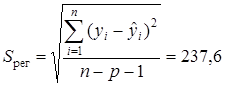 где ry , x 1 =0,780235; ry , x 4 =(–0,96876); — коэффициенты корреляции между парами переменных Y –X 1 и Y –X 4 соответственно (см. табл. 1 ); R 2 =0,946585 — множественный коэффициент детерминации (см. табл. 3 ).