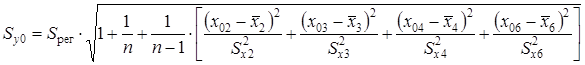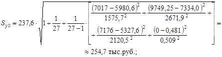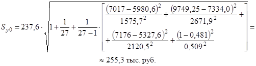 Стандартная ошибка прогноза фактического значения годовой прибылиy 0 рассчитывается по формуле