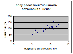 Рисунок 2 – Поле рассеяния «мощность автомобиля-цена»