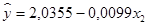 β 0 = 9,0625- 0,0099 * 100.6875= 2.0355