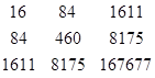 ХТ Х = 16*460*167667+1611*84*8175+1611*84*8175-1611*460*1611-84*84*167677-16*8175*8175 = 1234102720+1106273700+1106273700-1193847660-1183128912-1069290000 = 383548