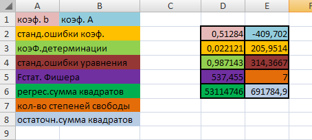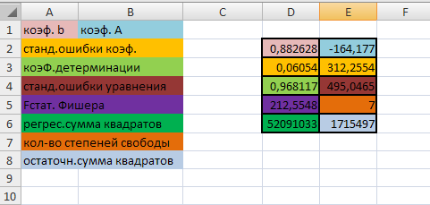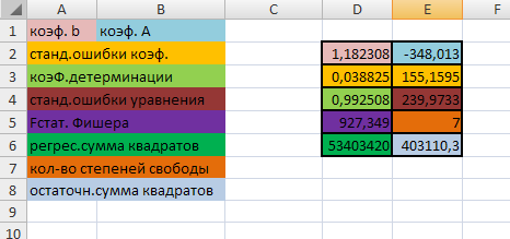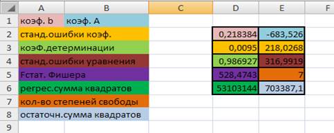 Остаются еще два факторы, которые были рассмотрены в ходе данной работы. Один из них - это денежные доходы в среднем на душу населения. Коэффициент корреляции равен 0,987, следовательно, зависимость существует. При помощи функции ЛИНЕЙН находим коэффициенты уравнения.