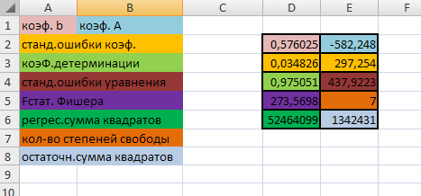 Следующий фактор, от которого зависит объем поступающих прямых инвестиций – расходы госбюджета. Судя по коэффициенту корреляции, можно сказать, что инвестиции в большей мере зависят от этого фактора, чем от всех остальных (коэффициент корреляции равен 0,996). В этом случае на 99% изменения инвестиций зависят от расходов федерального бюджета. Через функцию ЛИНЕЙН находим коэффициенты регрессионного уравнения.