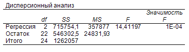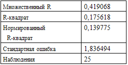 | Стандартная ошибка | 45,86314 | 7,712748 | 90,38595 | 0,396017 | 0,174864 |