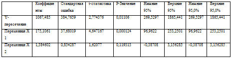 У=1067,5+175,1Х1 +1,38Х2