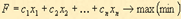 · переменных (аргументов функции F ), которые удовлетворяют системе ограничений, называется допустимым планом задачи линейного программирования. Функция F , максимум или минимум которой определяется, называется целевой функцией задачи. Допустимый план, на котором достигается максимум или минимум функции F , называется оптимальным планом задачи. Система ограничений, определяющая множество планов, диктуется условиями производства. Задачей линейного программирования (ЗЛП ) является выбор из множества допустимых планов наиболее выгодного (оптимального).В общей постановке задача линейного программирования выглядит следующим образом: