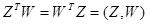 Если имеется два вектора Z и W, то скалярное произведение можно записать