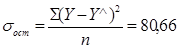 Для проверки значимости модели в целом использовались F-статистика Фишера. Для этого я определила остаточную дисперсию результативного признака: