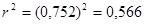 Коэффициент корреляции, равный 0,752, позволяет судить о тесной связи между результативным и факторным признаком (0,752 > 0,700).