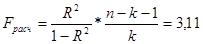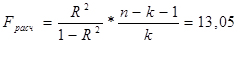 Следовательно, Fрасч >Fтабл , модель признаётся значимой.