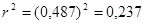 Коэффициент корреляции, равный 0,487, позволяет судить об умеренной связи между результативным и факторным признаком (0,487 > 0,300).