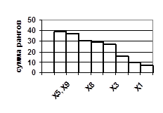 | Сумма рангов | 7 | 10 | 16 | 30 | 37 | 27 | 39 | 29 | 37 |