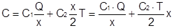 Встановимо спочатку витрати на доставку товару за час T. Тому що кількість партій дорівнює частці від розподілу загального обсягу постачань Q на обсяг однієї партії х, то витрати рівні