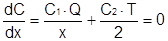 Товар поставляється на склад партіями, кожна партія має той самий обсяг x. За доставку однієї партії товару склад сплачує C1 грн., величина C1 не залежить від обсягу партії. За час Т склад одержує кількість товару, рівною Q. Збереження одиниці об'єму товару в одиницю часу коштує складу в C2 грн.. Товар зі складу рівномірно постачається замовникам, які самі оплачують перевезення товарів зі складу. Потрібно встановити мінімальний обсяг партії постачання х, при якому сумарні витрати складу на доставку будуть мінімальними.