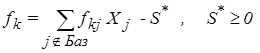 где fk - дробная часть компоненты плана (правой части ограничения) и fkj - дробная часть коэффициента при Xj (целая часть числа – наибольшее целое, не превышающее это число; дробная часть числа равна разности между числом и его целой частью), S* - новая дополнительная переменная.