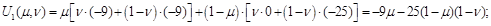 Предположим, что первый игрок с вероятностью µ играет стратегию У, соответственно с вероятностью (1 - µ) – стратегию Н. Второй игрок с вероятностью ν играет стратегию У, а с вероятностью (1 - ν) - стратегию Н.
