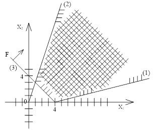 - функция прибыли F. Строим графическое решение для неравенств (2):