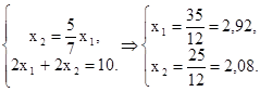 – целые числа (только конечный продукт можно продать и получить прибыль), находим: при х1